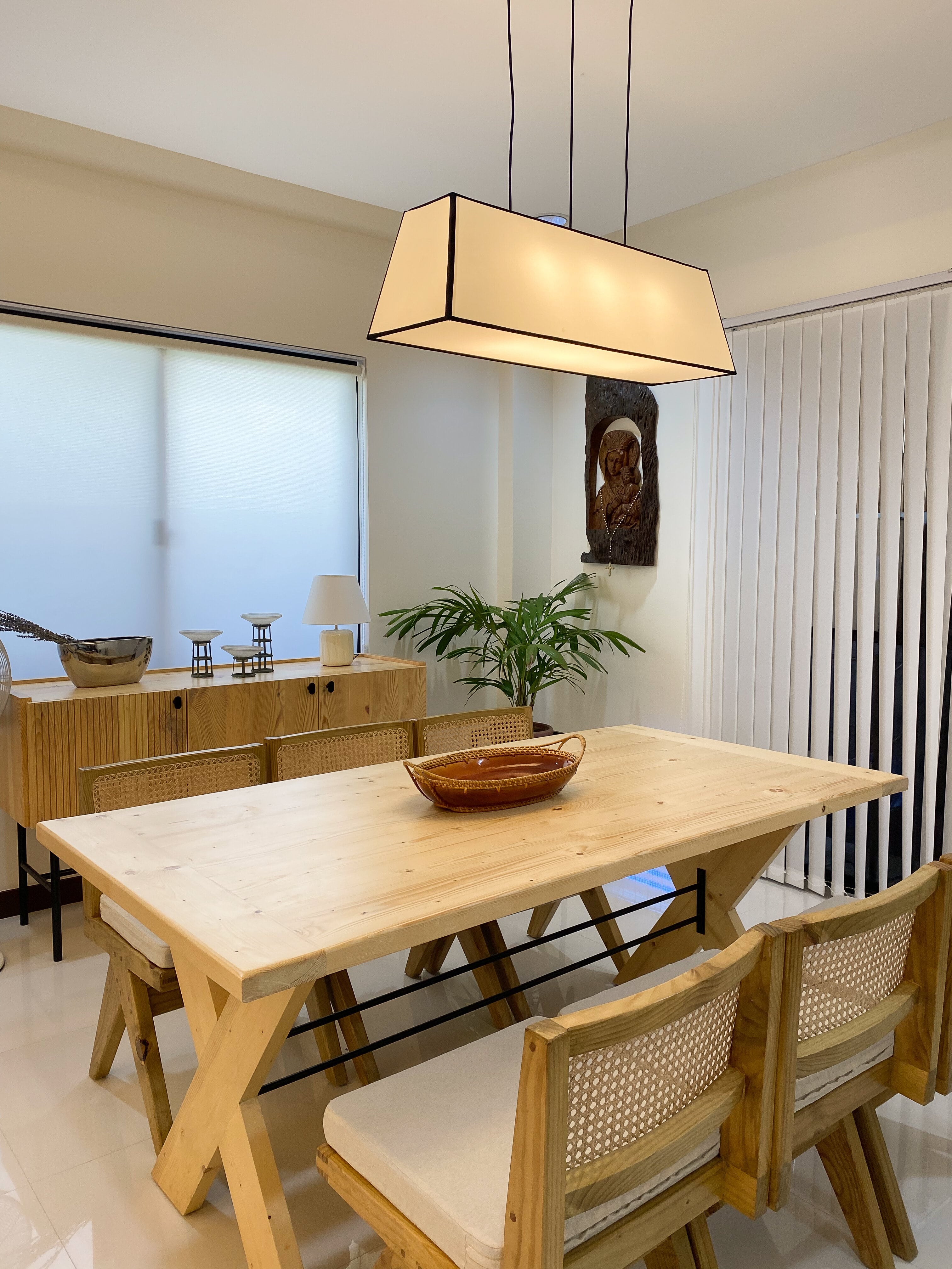 To achieve a calm and inviting environment, the designer used a light and neutral color scheme for the living and dining areas. Though the design is contemporary, modern and durable pieces of furniture made by Filipino artisans were introduced into the design to give the space a unique identity.