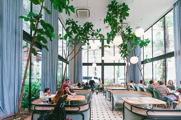 The high-ceiling glass house, which was previously a showroom, is surrounded by indoor trees and hanging lanterns. Upon stepping foot into the restaurant, it feels like a greenhouse: its glass windows paving the way for natural light to come in, adding a breezy touch that complements well with the sky blue curtains. The wooden tables are partnered with cushion seats, and it’s easy to fall in love with its laid-back ambiance.