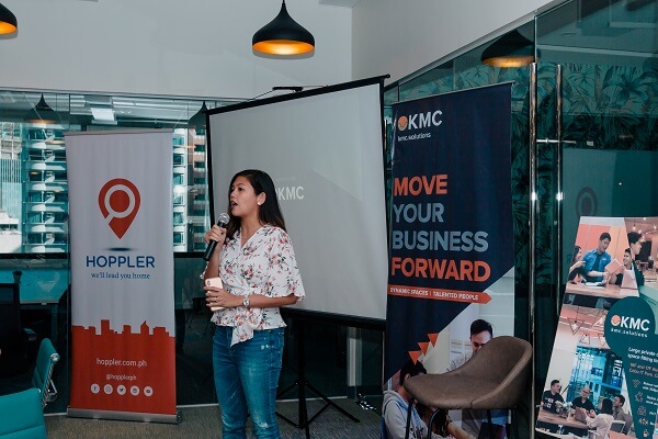 After a short break, Therese Hilario, KMC Solutions’ Area Manager for Makati, welcomed everyone formally to Frabelle Corporate Plaza, which is their newest space and second in Salcedo Village. She then gave a brief introduction to the services of KMC and announced a new promo for real estate brokers and agents.