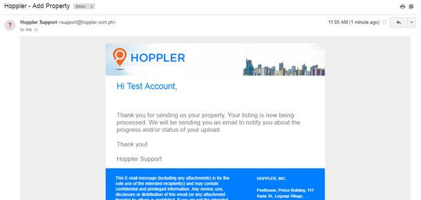 You will receive an e-mail confirmation that your property is now For Approval. Hoppler will send you another e-mail to notify you about the progress of your upload.
