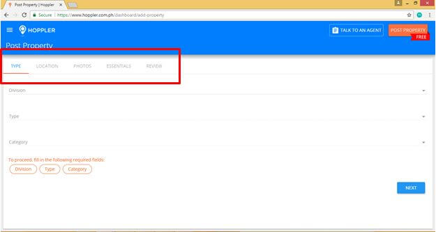 - Click the Post Property [Free] button on the upper right side of the webpage