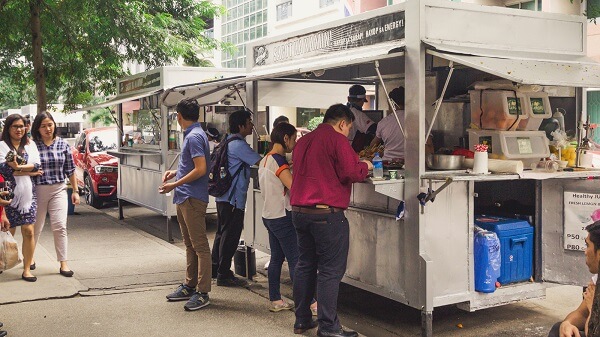 In the 80s, a number of enterprising old ladies – or those we, Filipinos, fondly call manangs – would flock to the streets of Ayala Avenue to sell home-cooked meals. Being constantly forced to stay out of the streets by traffic enforcers, they would retreat to the side streets which eventually became their new territories. It is believed that one of them saved enough money to purchase an old jeepney that she used as transportation and storage. When other manangs finally bought jeepneys, too, the dynamics of the way they sell changed; they used the jeepneys to transport food from one place to another. Customers, then, called the jeepneys as Jollijeep, from the words “Jollibee”, a popular Filipino fast-food restaurant, and “jeepney”, a Filipino transportation.