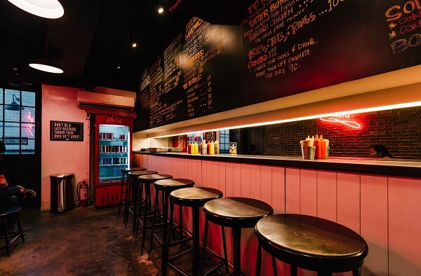 The first thing one notices upon entering the restaurant is the unmistakable neon sign that reads, “long live bacon.” Across it is a giant menu board consisting of burgers, hotdogs, sandwiches, and sides.