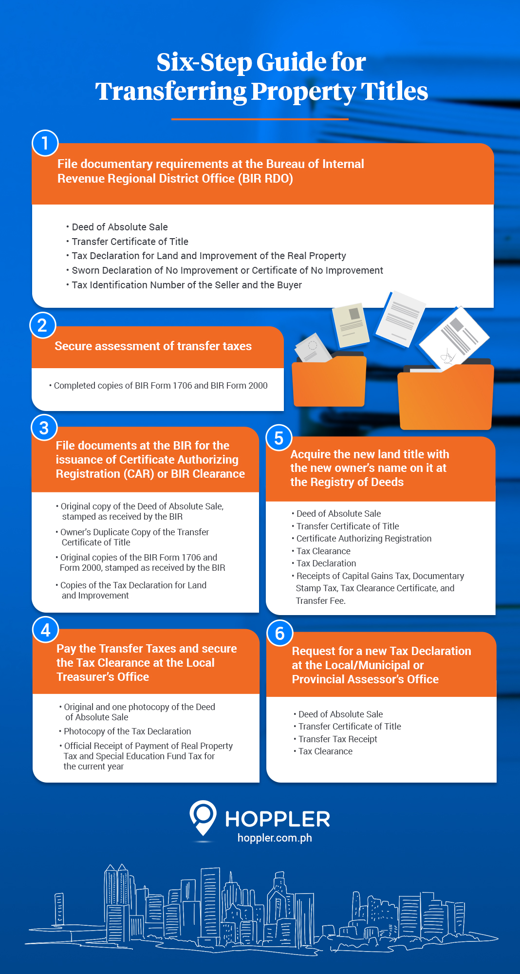 The title is proof of ownership of the property. If you don’t secure the transfer, you could run into legal problems in the future. Even before you buy a property, make sure to plan out the steps of executing the transfer of its title already.