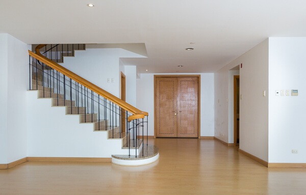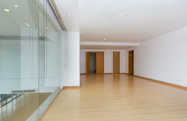 A family can fill the living room with accent furniture items and decorations to elevate its restful ambiance further. To maximize the extensive windows, employment of tall and elegant draperies is recommended. For the balcony, houseplants can be displayed, as they do not only enhance the look of a space, but they also improve health.