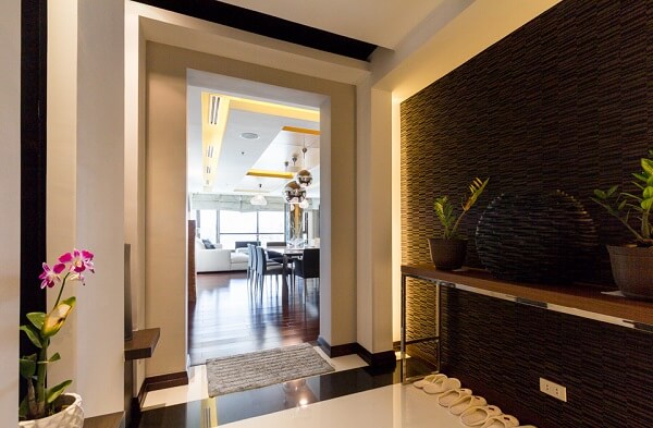 There’s an undeniable sense of completeness to the condominium. It opens to a stunning walkway that leads to the dining area and living room. The living room is lit by strategically placed hanging lights and lamps that emphasize the modern piece in the space. Comfortable cushions are placed at the corner of the room where natural light passes through the wide windows.
