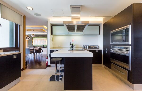 The kitchen is armed with the tools to ease the work of a fervent cook. The space also opens up to another vast area that can be transformed into an open bar.