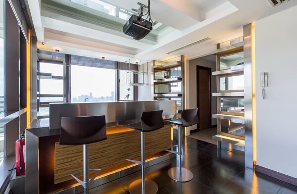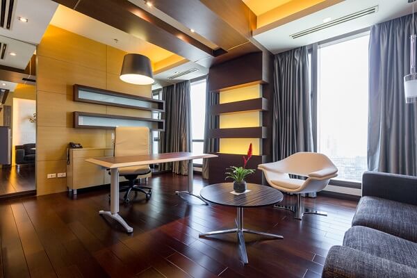 Directly beside the bedroom is a home office, one of the latest trends in condo living catching fame among business executives.