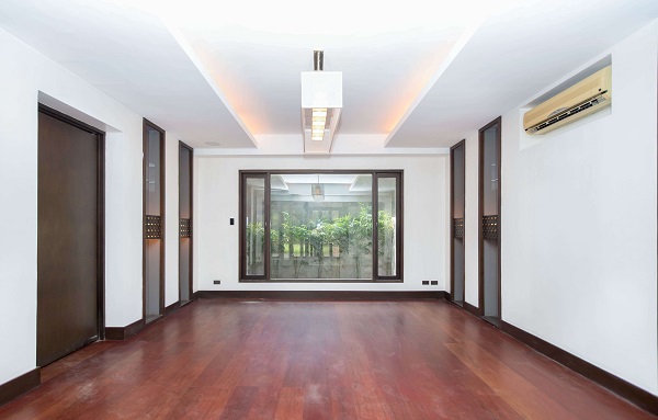 Enter into this vast living room, perfect for a variety of gatherings, big or small. Sliding windows pave the way for easy access between the living room and the garden, permitting natural light to illuminate the interiors. The living room also opens up to a bedroom in the first floor, with its own bathroom and installed speakers.