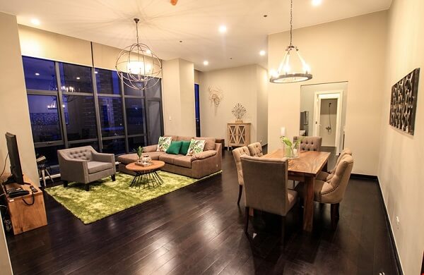 5. Lighting pieces like modern hanging lamps help radiate a room and refine the space further.