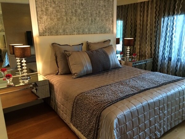 - Floating mirrored bedside tables further enhance the posh vibe of a bedroom.