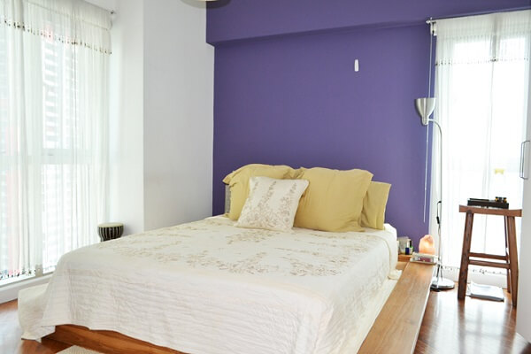 - The golden metal headboard and white beddings create a fit-for-royalty bedroom.