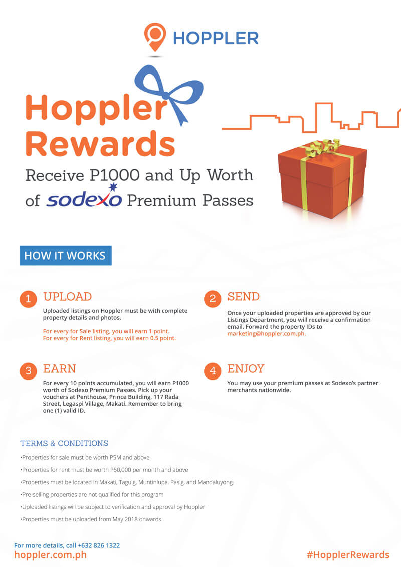 By Ramon Ballesca - June 04, 2018Receive P1,000 and up worth of Sodexo gift certificates by posting listings. This incentive program is exclusive to Hoppler Partner Brokers.