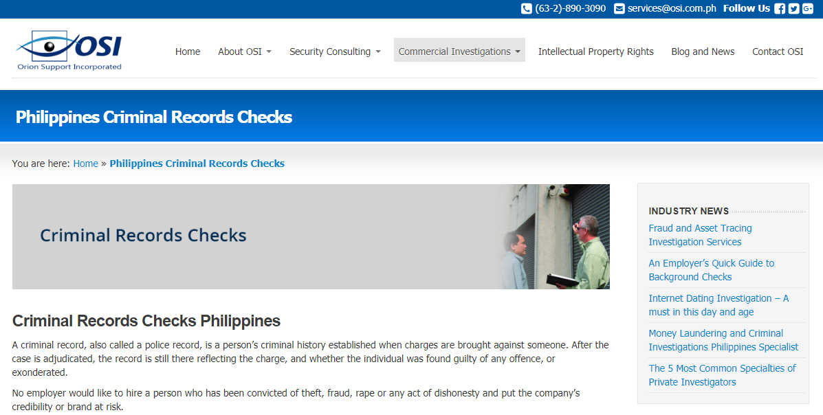 On the other hand, you also have OSI (Orion Support Incorporated) that offers Philippines Criminal Records Checks. The OSI’s Basic disclosure criminal record check includes unspent convictions but does not include job-specific information.