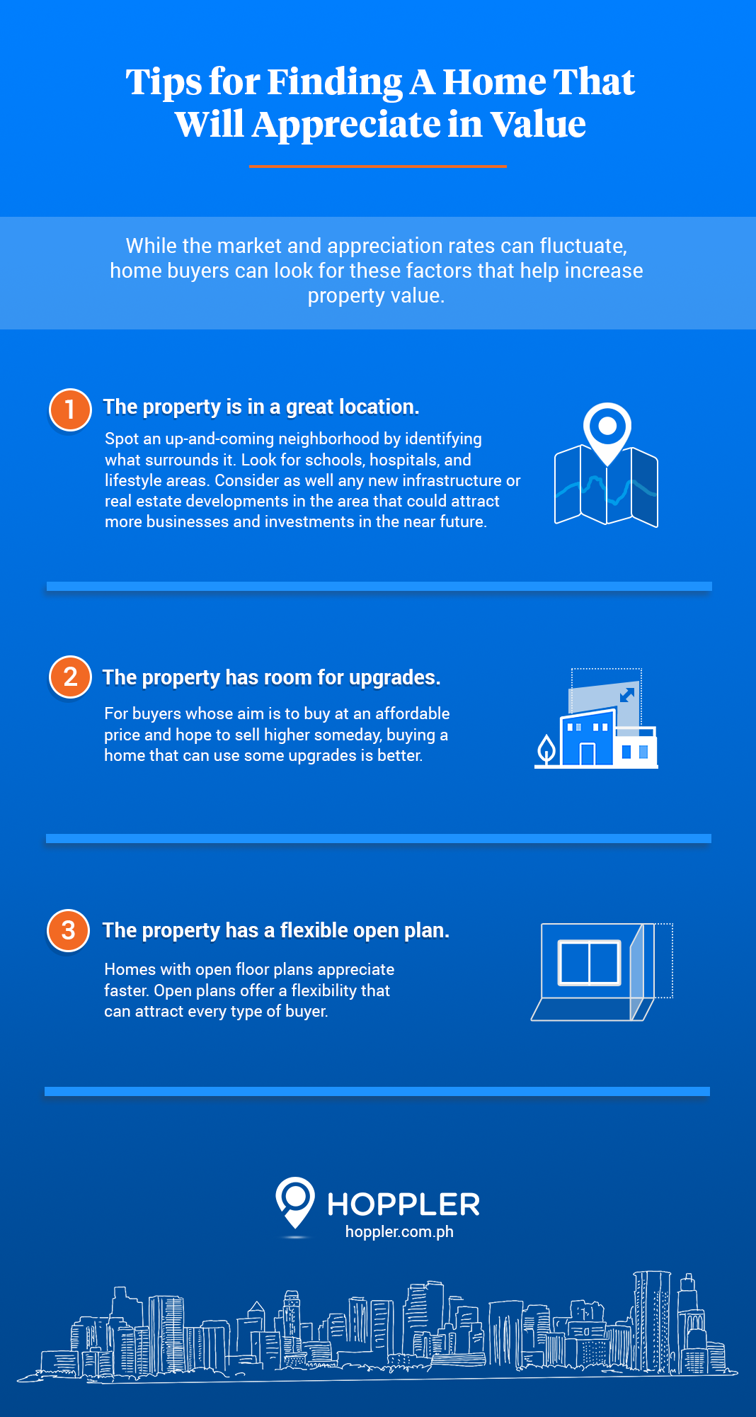 But physical characteristics – like the neighborhood it’s located in, home features, and layout – can increase the value of a home. Thus, home buyers should keep an eye out for these factors if they are aiming to buy a home that will appreciate for future resale purposes.